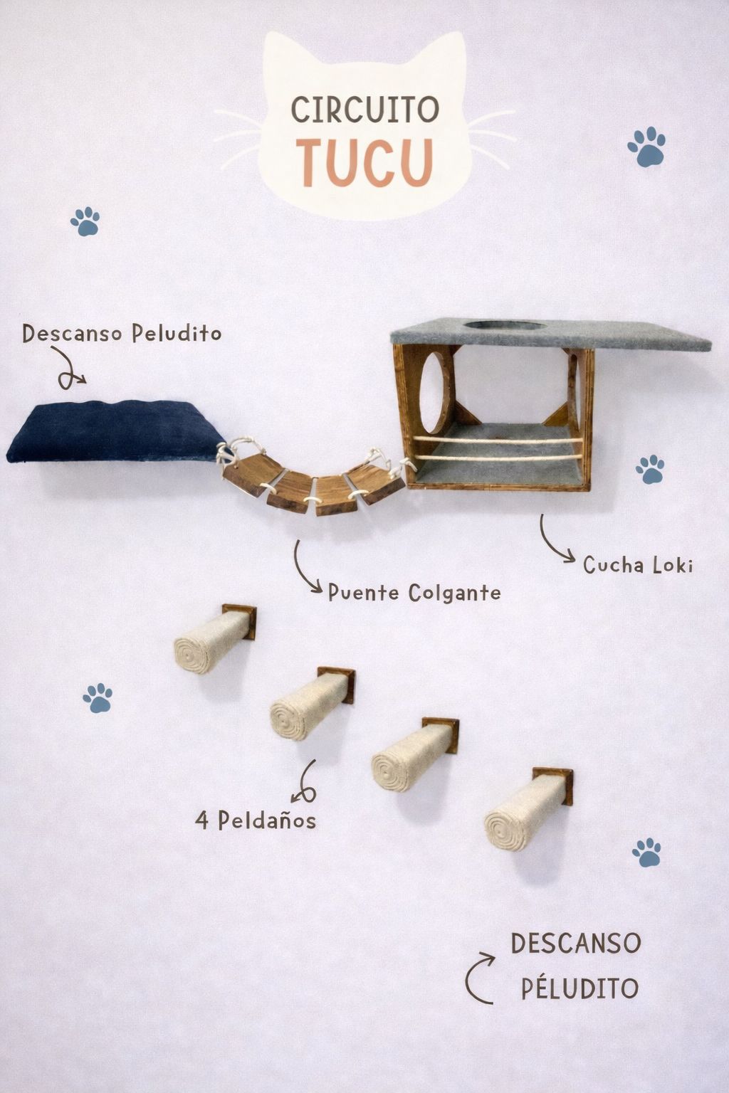 Para gatos traviesos y juguetones. Armado adaptado al tamaño del hogar.